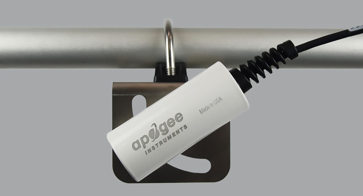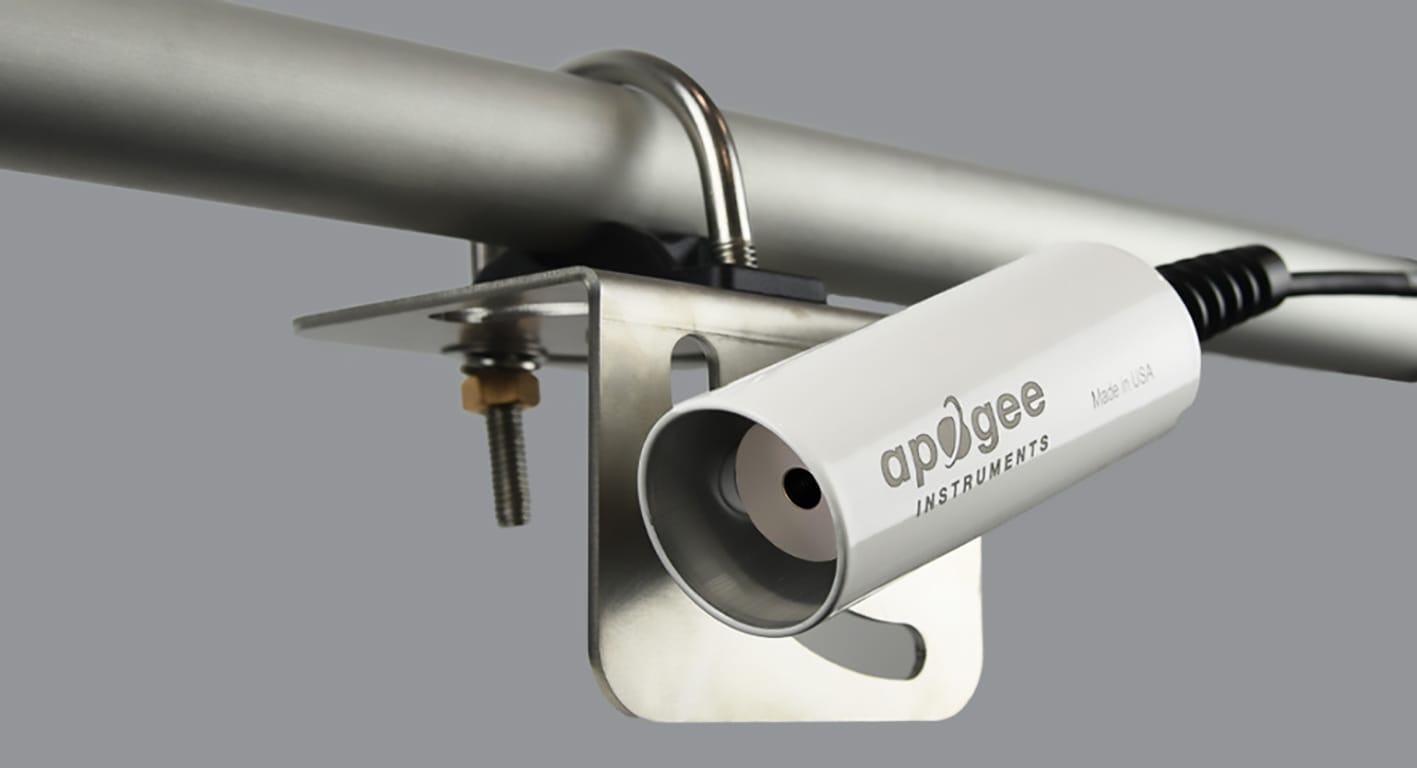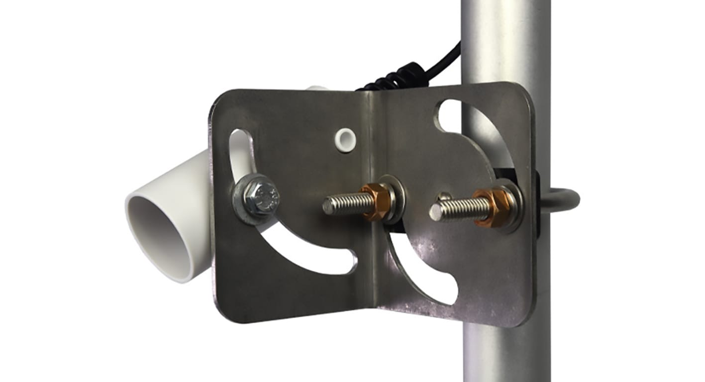 O AM-250 é um suporte angular de nível comercial desenvolvido para a montagem de radiômetros infravermelhos da Apogee Instruments, especialmente os modelos com escudo solar integrado, como a série SIL. Seu projeto permite a fixação segura do sensor em mastros ou tubos com diâmetro externo entre aproximadamente 1,3” e 2,1”, oferecendo ampla flexibilidade de instalação em estações meteorológicas, torres de monitoramento e estruturas agrícolas ou ambientais.