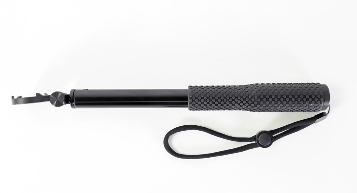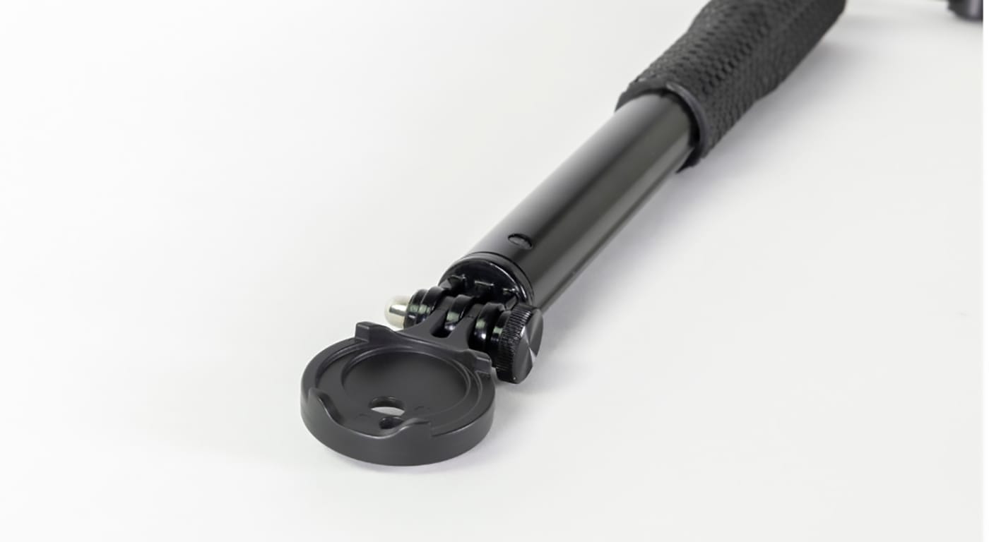 A haste possui estrutura extensível, com comprimento aproximado de 28,5 cm quando totalmente recolhida e alcance de até 92 cm quando estendida, medidos do final do punho até o centro do suporte do sensor. Esse ajuste de comprimento permite adaptar o posicionamento conforme a aplicação, garantindo flexibilidade durante o uso em campo, estufas, laboratórios e sistemas de cultivo indoor. A plataforma de montagem conta com dois furos, possibilitando a fixação segura tanto de sensores com cabeçotes de menor diâmetro quanto de modelos com cabeçotes maiores.