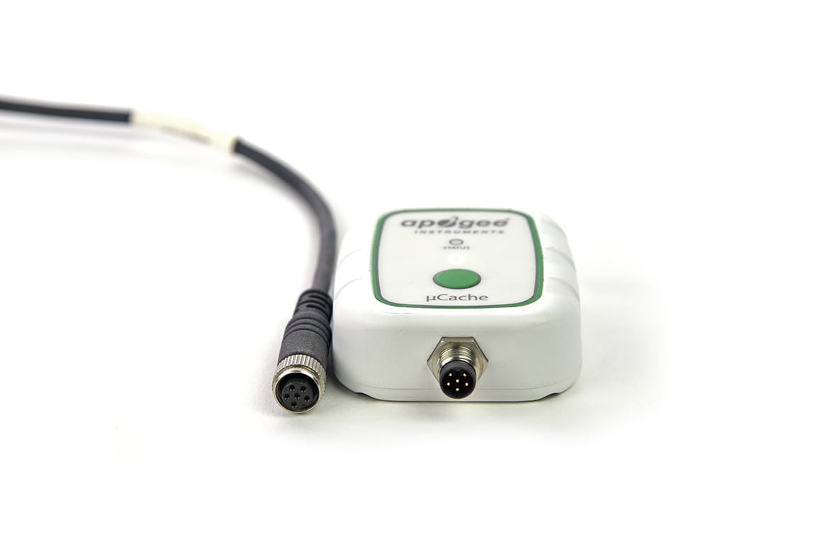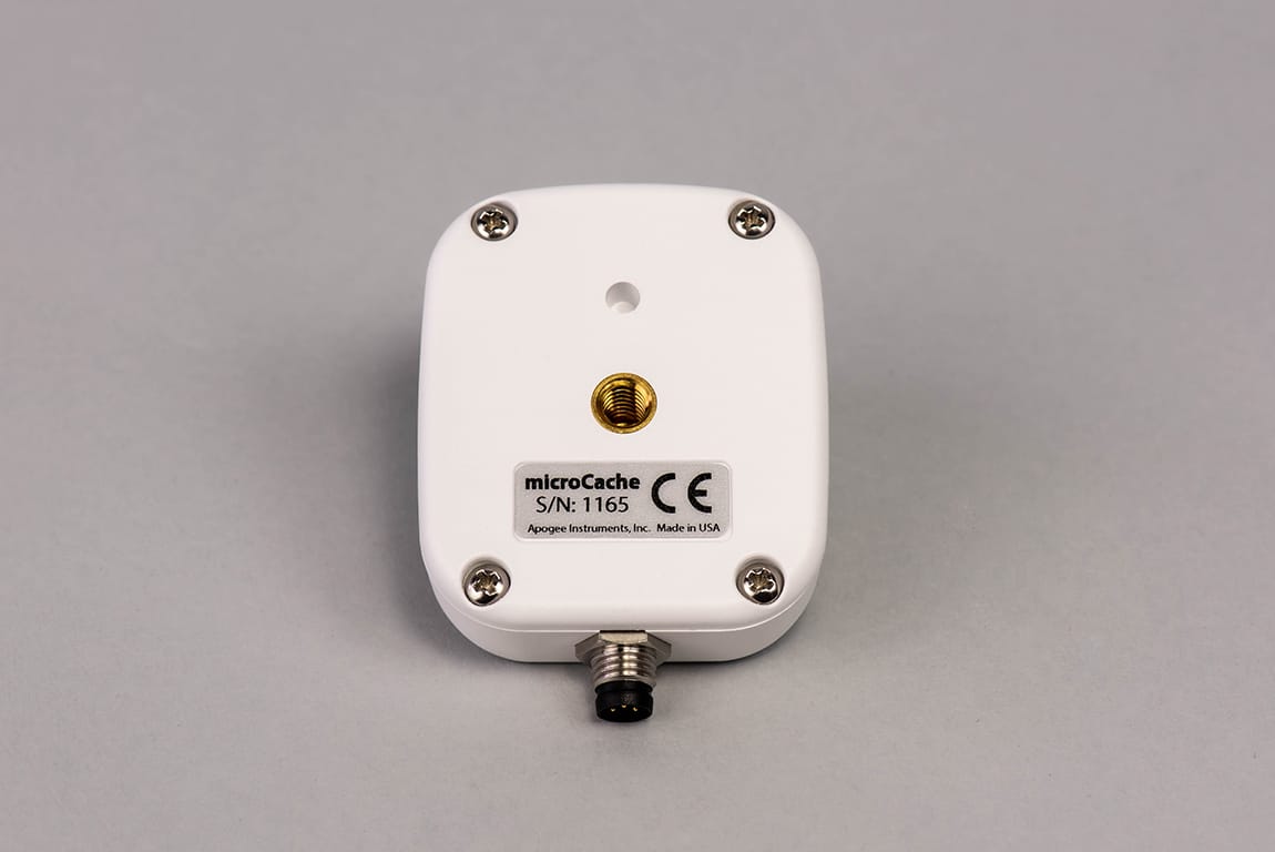 O AT-100 microCache é um datalogger compacto e de alta precisão desenvolvido para registrar medições provenientes de sensores analógicos da Apogee Instruments, oferecendo conectividade Bluetooth® de baixo consumo para interface direta com dispositivos móveis. Ele permite visualizar dados em tempo real, configurar intervalos de amostragem e registro e exportar conjuntos completos de medições por meio do aplicativo ApogeeConnect para iOS e Android. A comunicação sem fio facilita o uso em campo e elimina a necessidade de cabos ou dataloggers tradicionais, tornando o processo de monitoramento significativamente mais ágil.