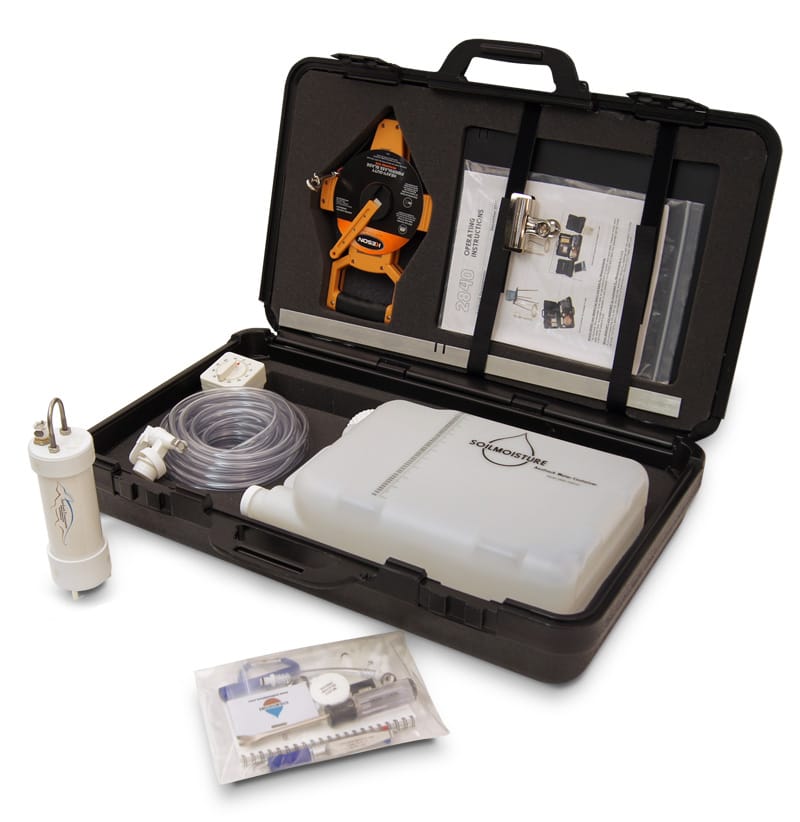 O Kit Permeâmetro Aardvark (antigo 2840K1 para medições a menos de 3 m (11 pés) e 2840K2 para medições a mais de 3 m) possui tudo o que é necessário para realizar a medição e é simples de instalar e usar.