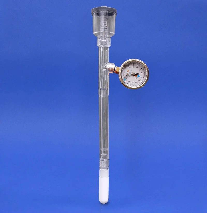 A tensão da água no solo é transmitida através do copo cerâmico para o tensiômetro. O vácuo dentro do tensiômetro é medido por um manômetro ou transdutor digital (que fornece um sinal de saída analógico contínuo) para registro de dados ou conectividade com a Internet das Coisas.